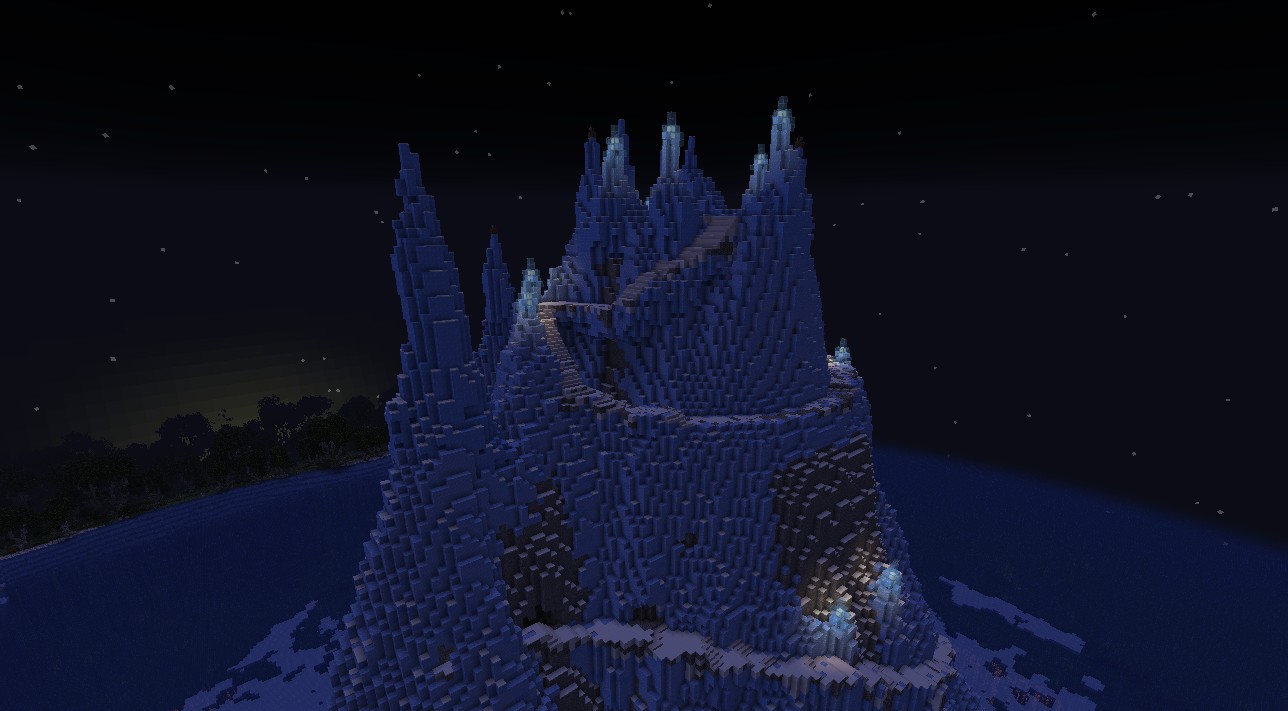 A frozen fortress inside the cursed ice forest of Gloomwald in northern Amerand. This entire biome cursed and players are known to freeze to death trying to explore it.