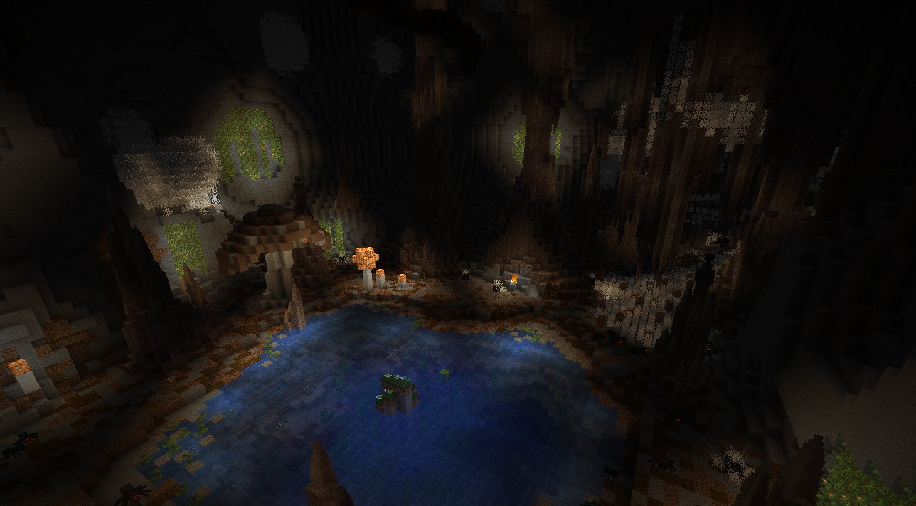 A deep dark cave filled with thousands of spiders. The only open entrance is the top of a massive tree stump.