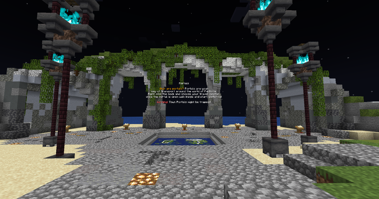 • Town portals, that are created by towns and are placed inside towns to allow their members to teleport to the server spawn and from the spawn back to the town.